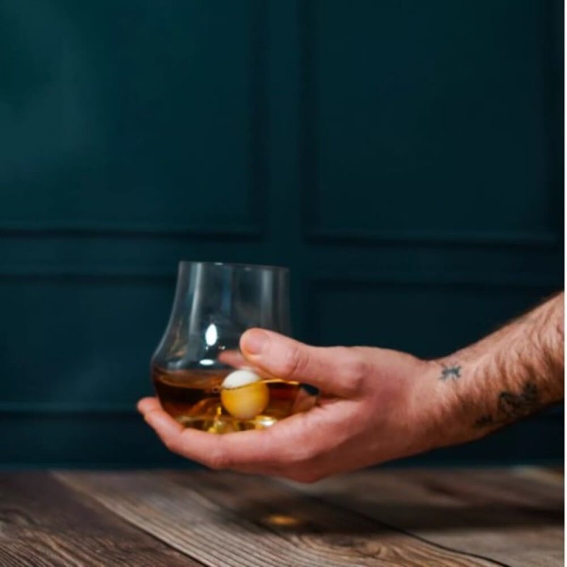 La rotazione regolare della sfera di marmo attorno alla cupola centrale del bicchiere mette in moto lo spirito, che sprigiona il massimo dei suoi aromi. Queste sottili fragranze si concentrano nel cuore del bicchiere a forma di tulipano, permettendo all'etanolo più volatile di fuoriuscire rapidamente. Si scoprono così note olfattive che rimarrebbero nascoste in un altro bicchiere.