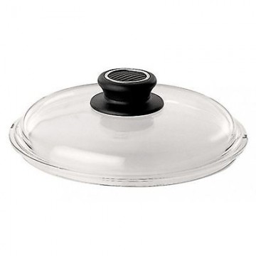 Coperchio in vetro temperato, trasparente per controllo cottura. Resistente nel forno fino a 260°, con pomolo brevettato senza viti e rivetti.